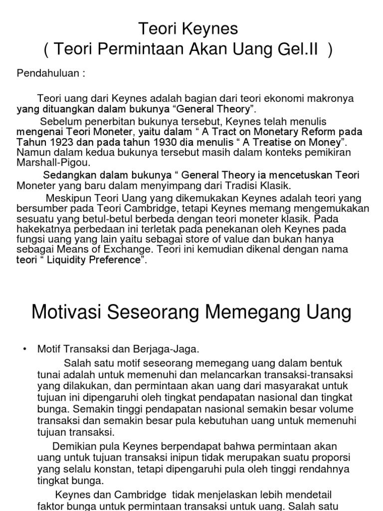 Perbedaan Teori Permintaan Uang Klasik Dan Keynes Info
