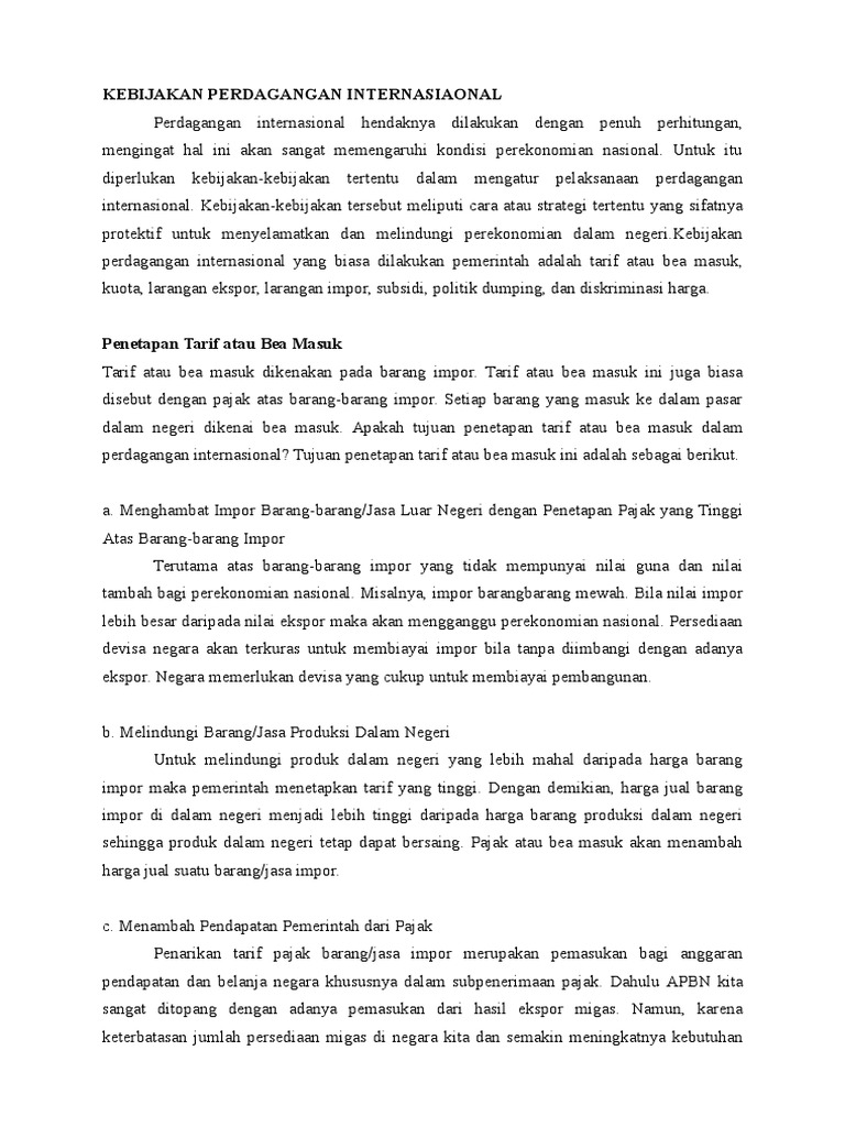 Kebijakan Perdagangan Internasional dan contoh kasus
