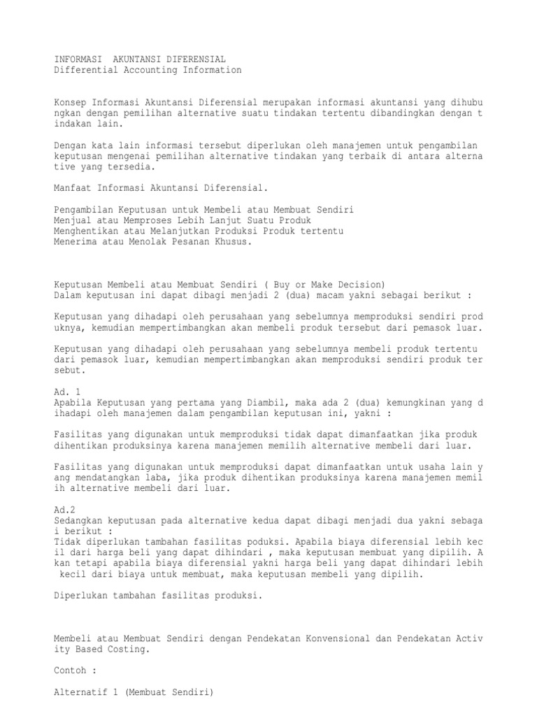 Skripsi Analisis Biaya Diferensial Dalam Pengambilan