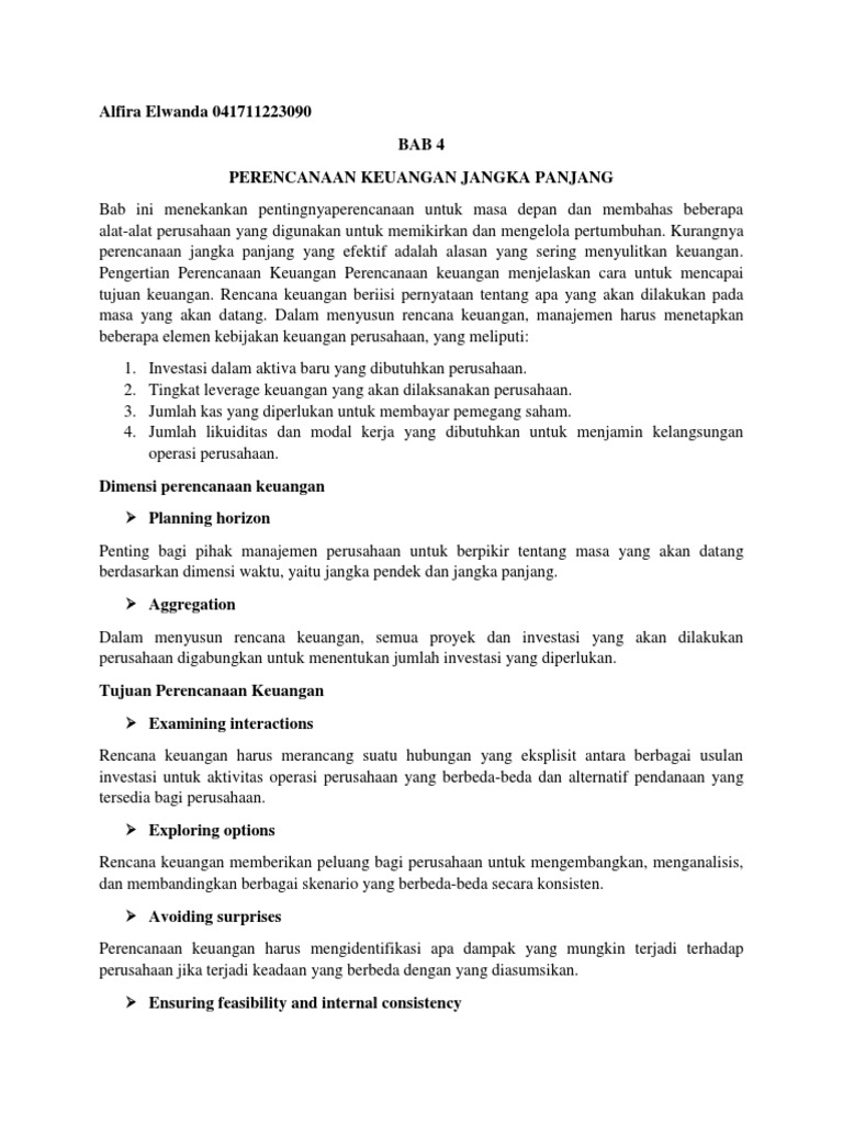 BAB 4 PERENCANAAN KEUANGAN JANGKA PANJANG