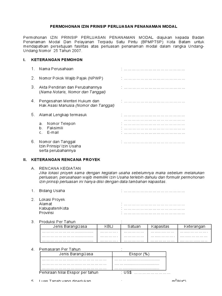 Form Izin Prinsip Perluasan Penanaman Modal